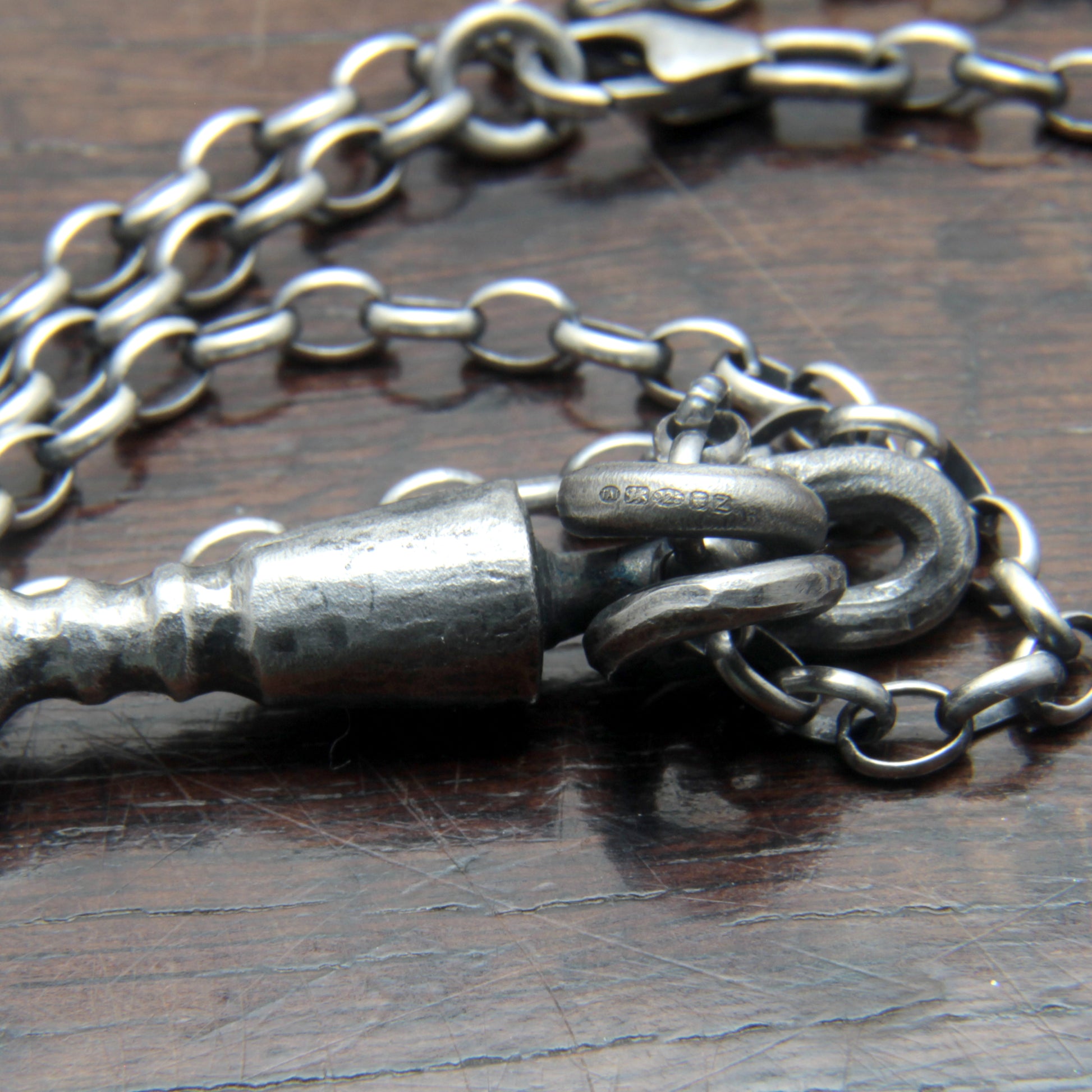 Unlike most silver jewellery, this arrow pendant has not been cast, it has been individually hand forged using traditional blacksmithing techniques. The rustic finish retains the hammer marks that bear witness to it making, a method seldom used in silver jewelry due to the amount of time it takes compared to casting. Each arrow is unique and has its own character, with small differences in size, shape and texture. .
